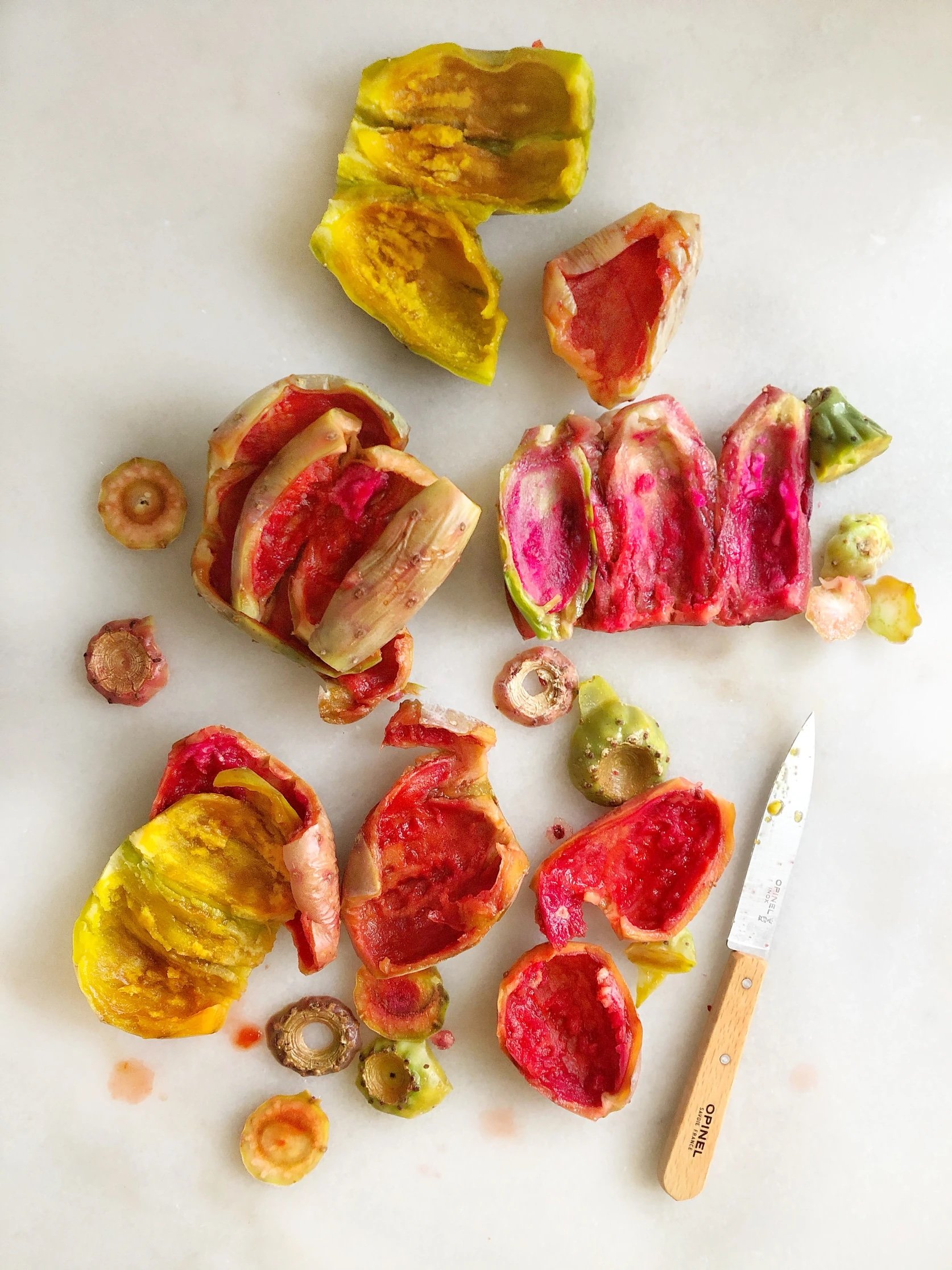 In late summer in Palestine, prickly pear, cactus fruits, or صبر are everywhere—a refreshing snack eaten often ice cold straight out of the fridge or served on trays with ice for a weekend brunch.