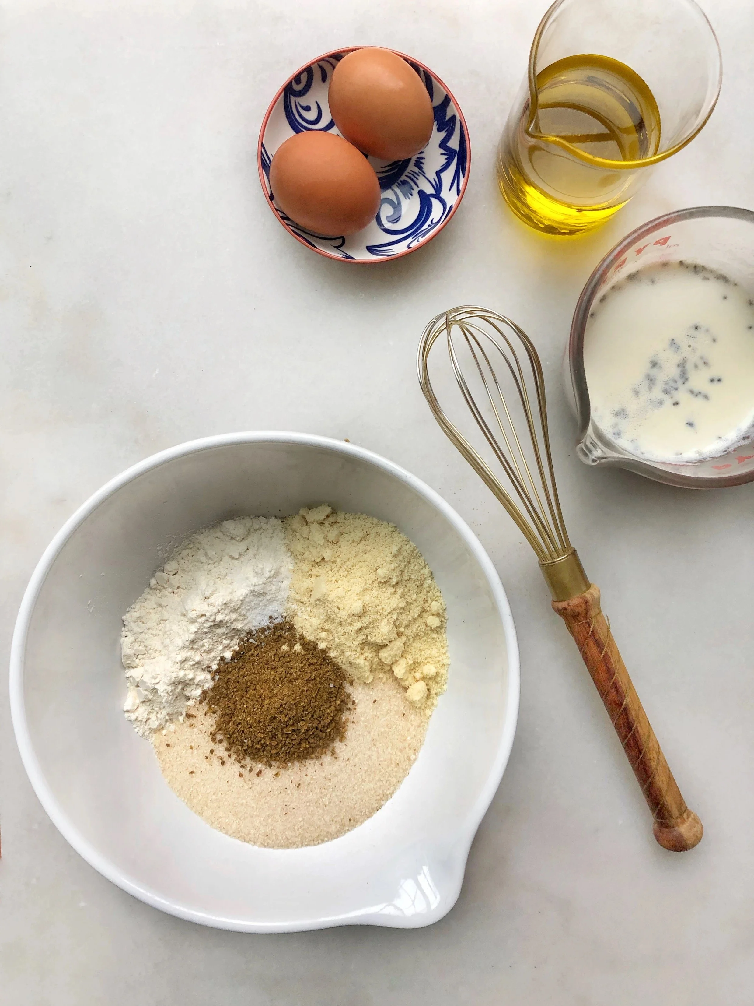 In a separate bowl, whisk together the dry ingredients: flour, almond flour, ground anise powder, baking powder, baking soda and salt. Add the wet ingredients into the dry ingredients and mix until it’s combined. Don’t over-mix.