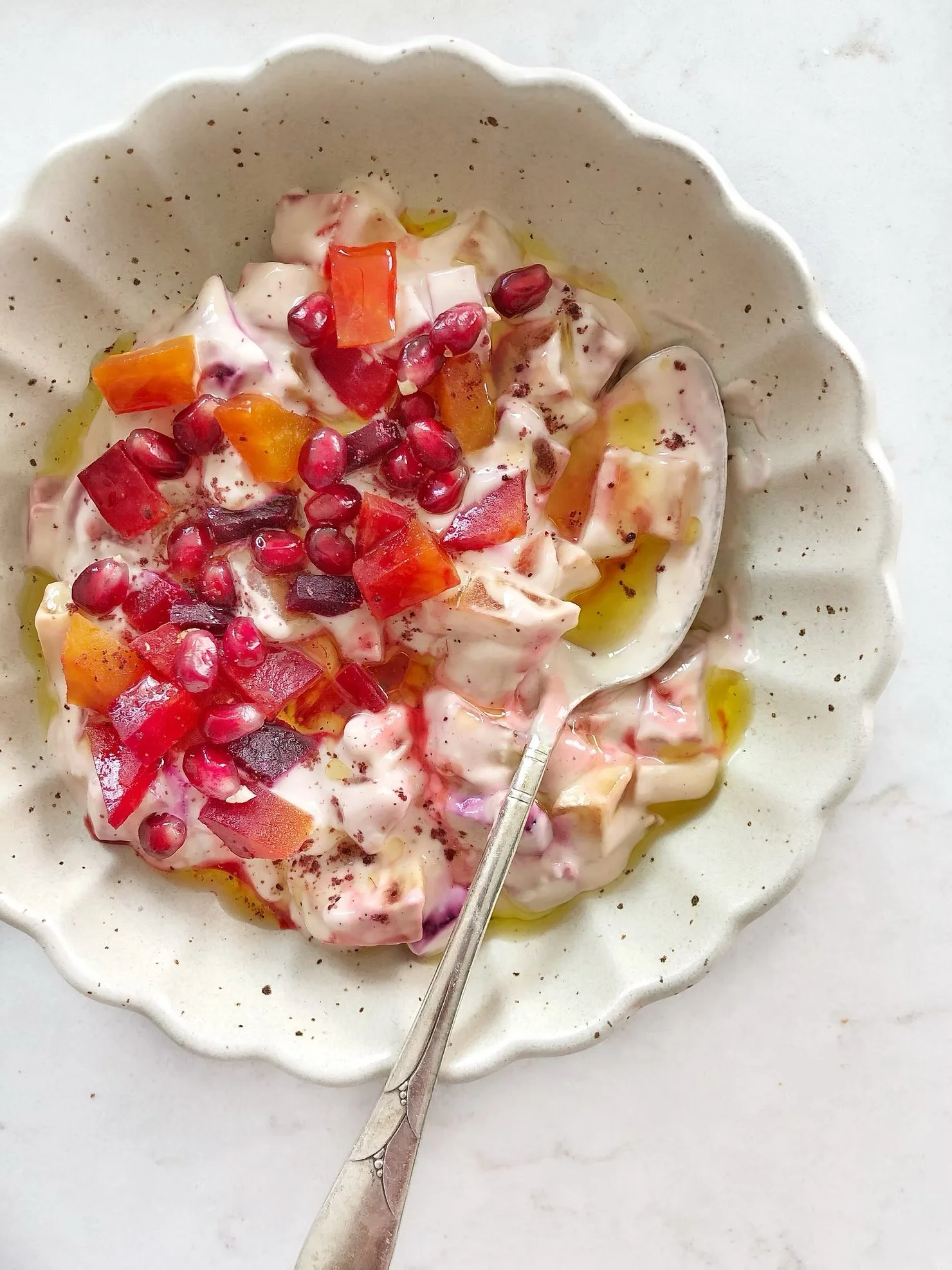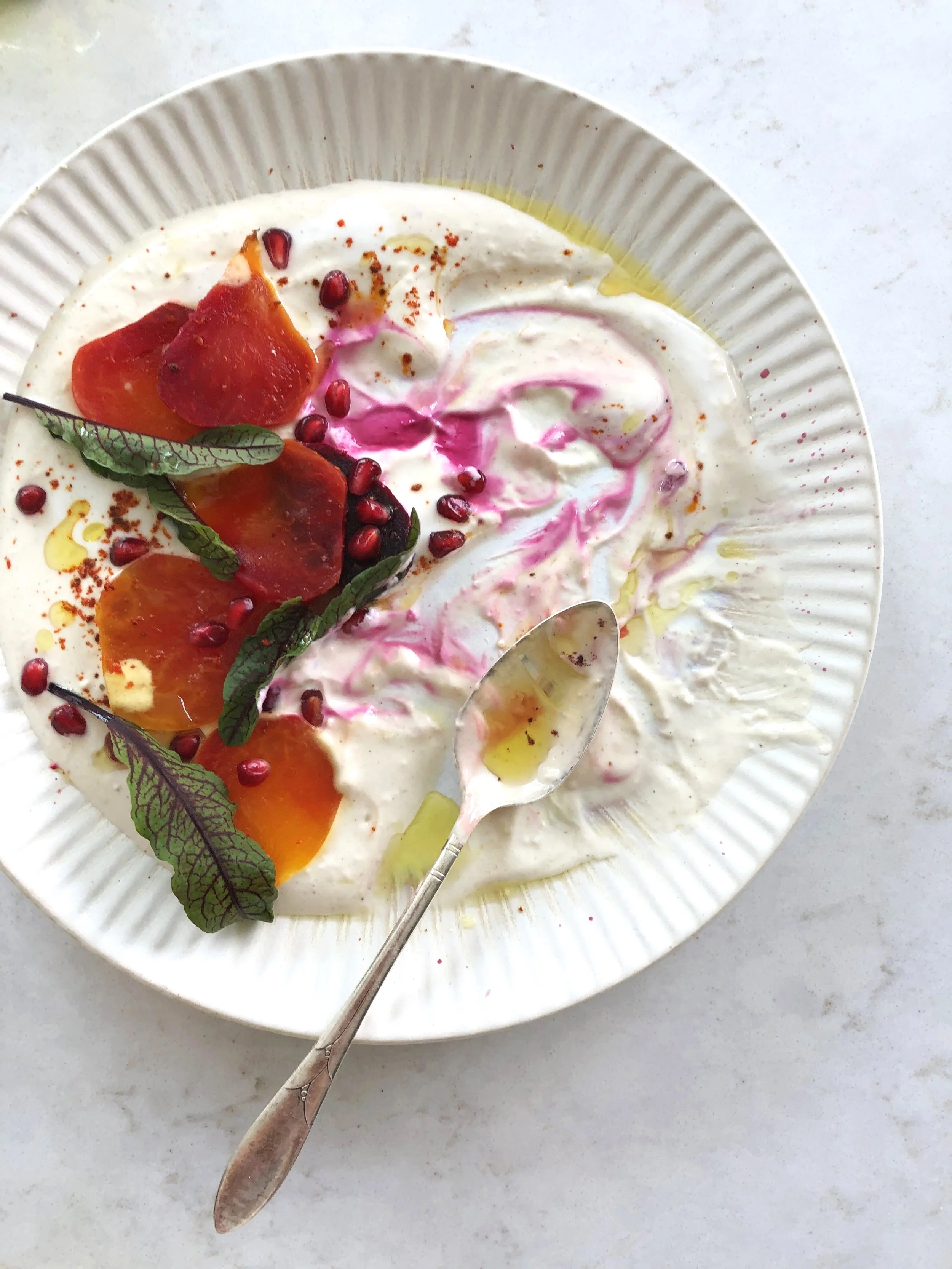 They are naturally sweet and earthy. Roasting the beets intensifies their flavor and sweetness, plus their beautiful color, its like natures candy. They are also loaded with essential vitamins and minerals. Growing up this salad was made with diced up beets and then tossed in the tahini dressing. It was often served for lunch with pita bread. I am pairing the sweet beets with a tahini and kefir base that’s flavored with sumac, thyme and lemon. The earthy flavor of tahini pairs so well with the sweet beets. And Kefir adds loads of protein, vitamins and probiotics to help our gut, and is essential to our immune system. This vitamin powerhouse salad makes for a perfect meal on its own with some greens or serve it as a side dish next to pan seared fish. I hope you make this salad and stay UP BEET ❤️I cooked this live on @lifewaykefir you can check it out on their IGTV !