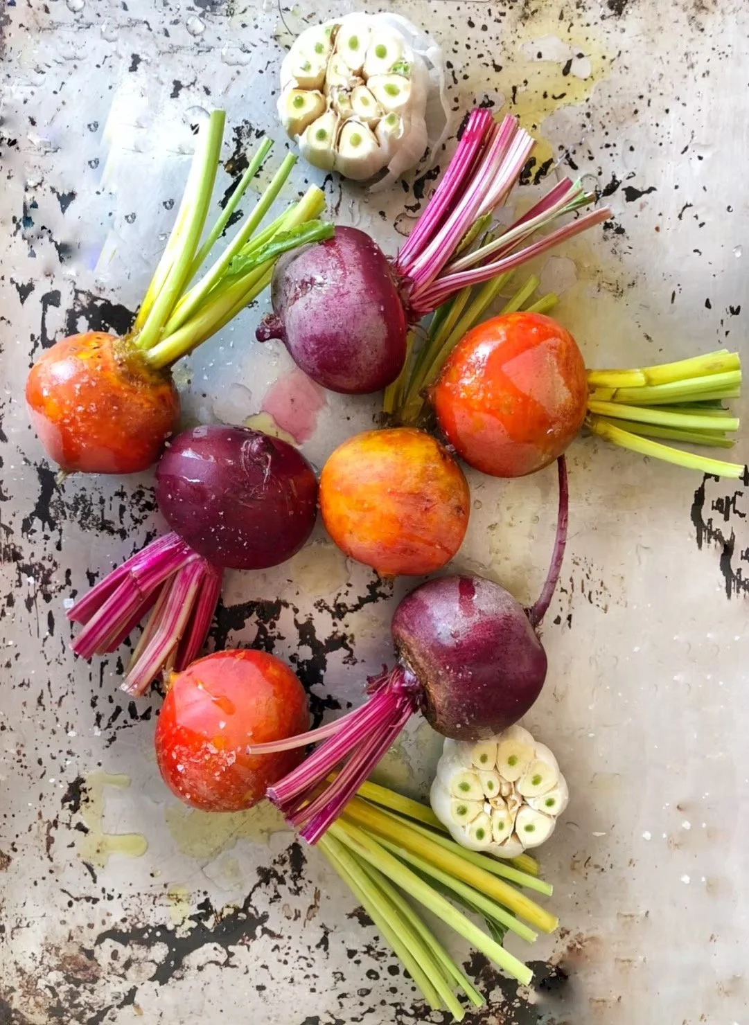 6-8 small beets or 3-4 medium to large yellow or red, or a combo *2 tablespoons olive oil