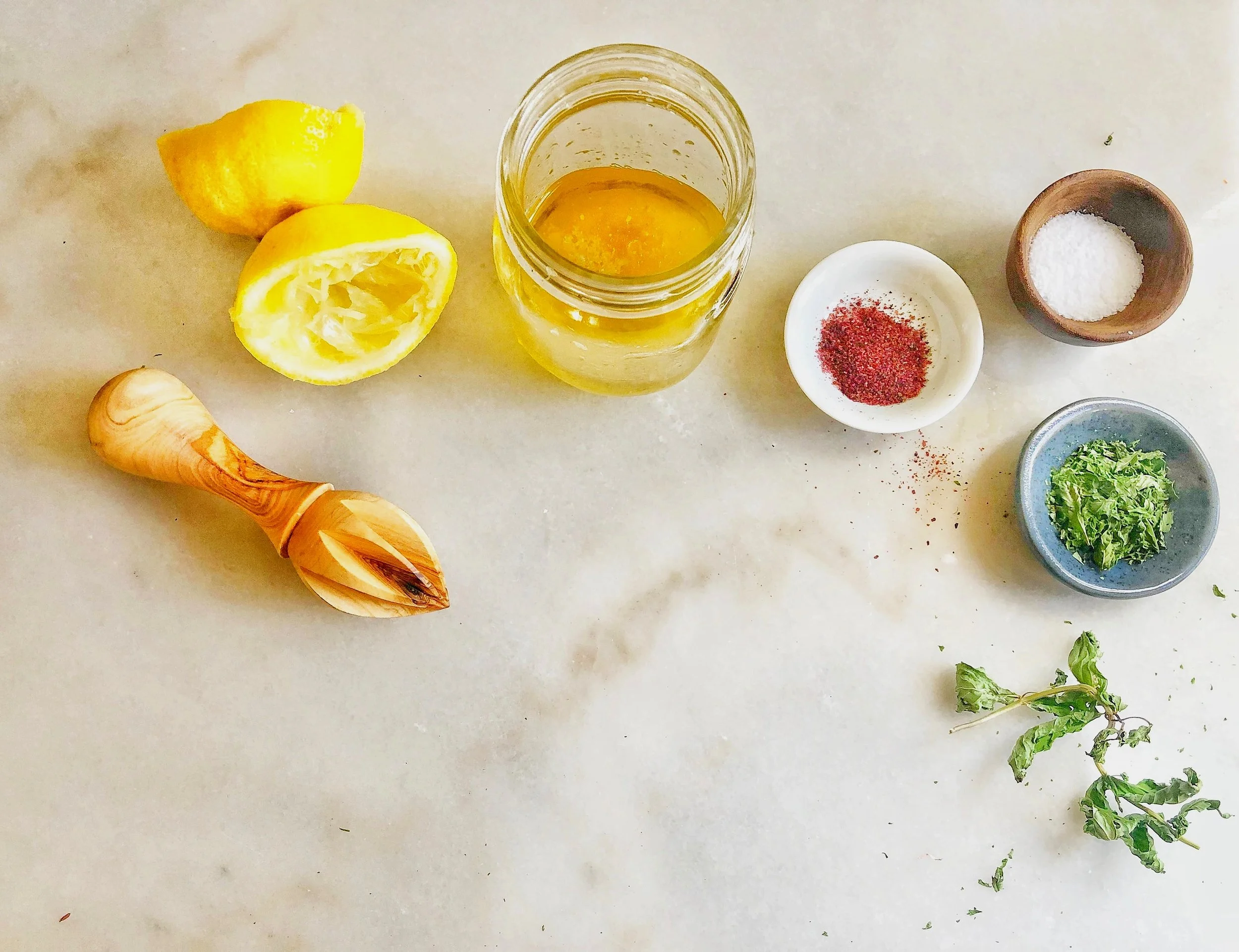 To make the dressing, add all the ingredients to a mason jar. Shake well to combine.