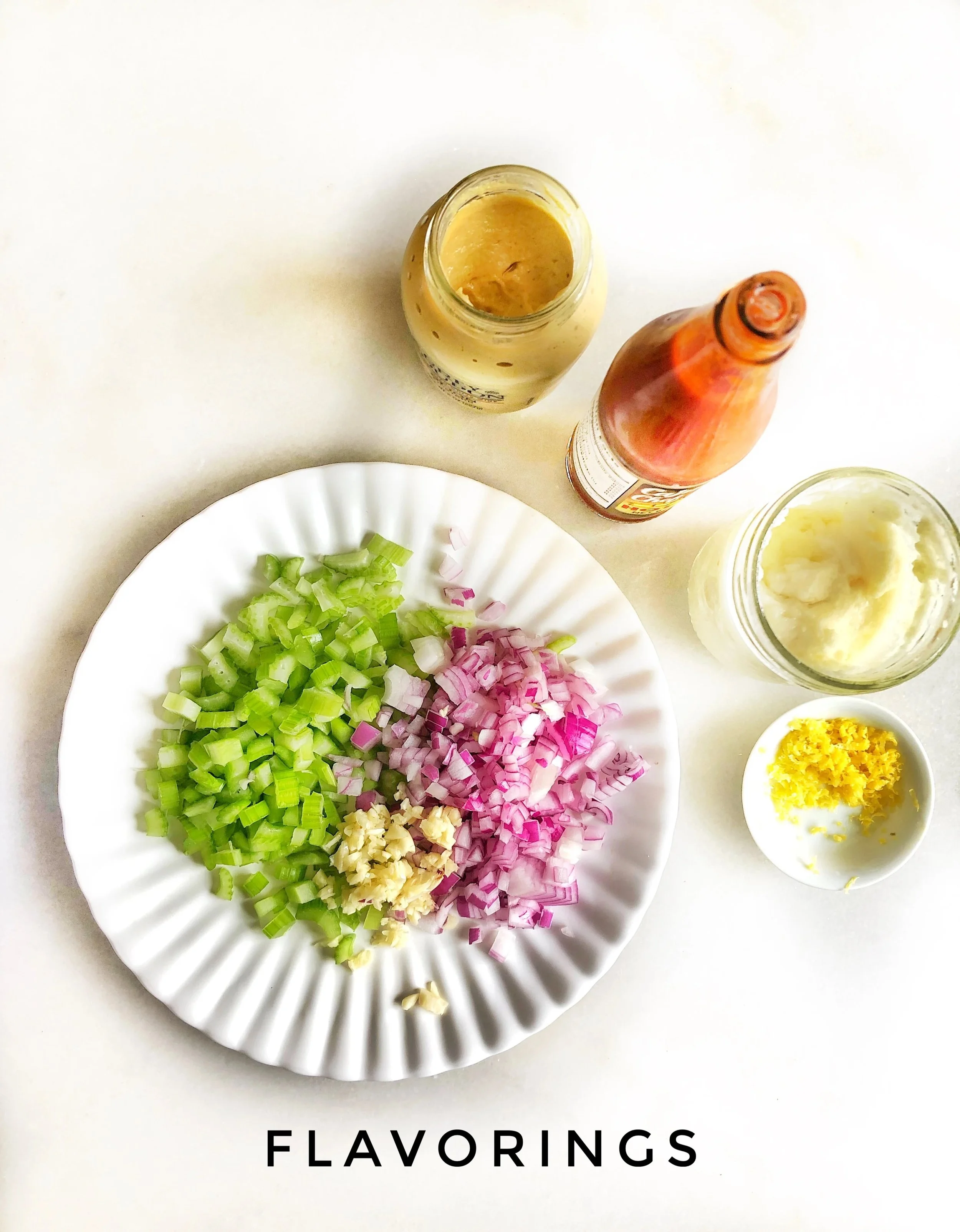 1/2 cup toum (garlic paste) or a good quality mayonnaise then add 2 minced garlic cloves. If your fish is still dry and doesn't hold its shape add more 1 tbls at a time