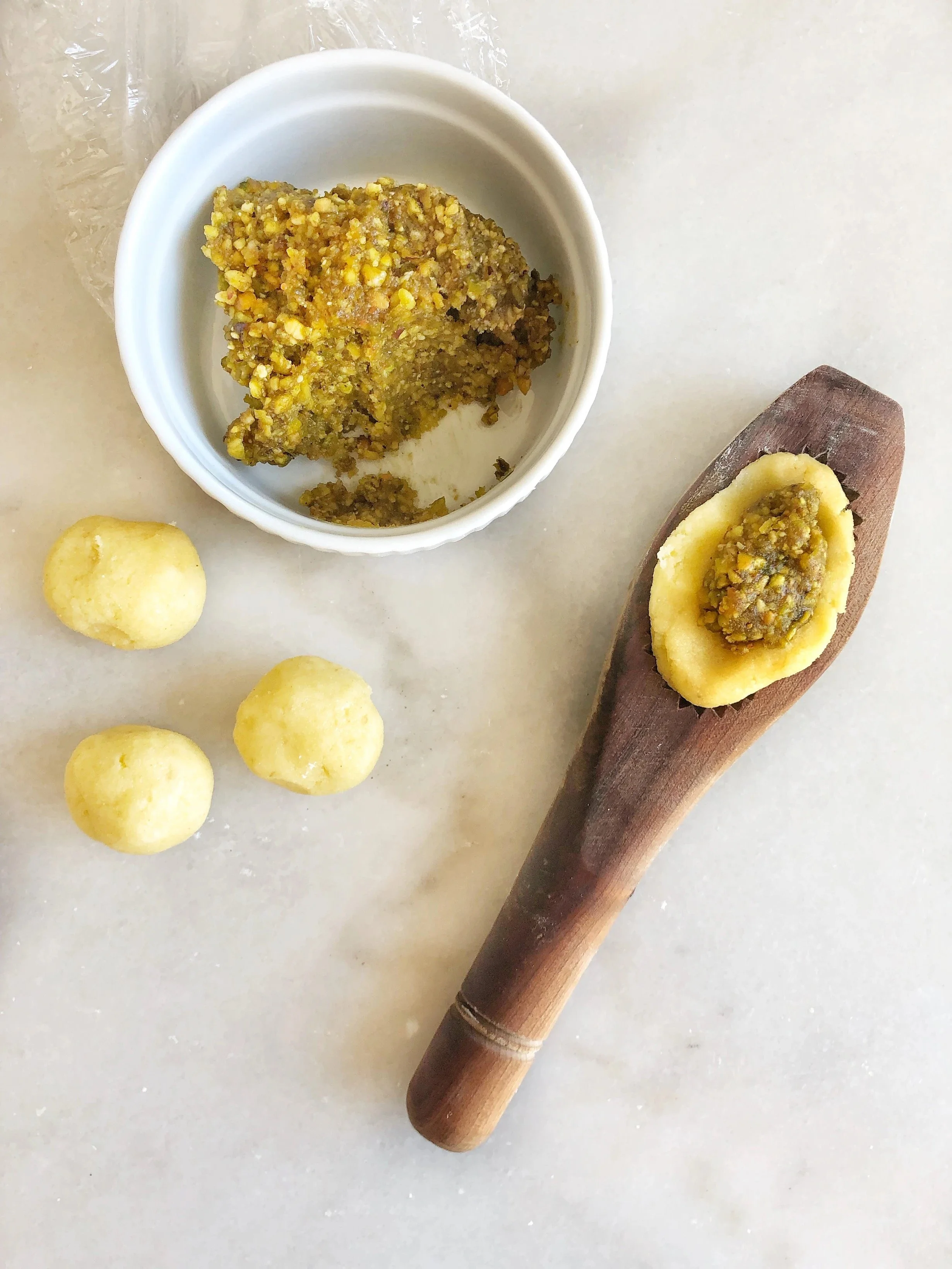 Top to bottom: date, pistachios, & walnut fillings