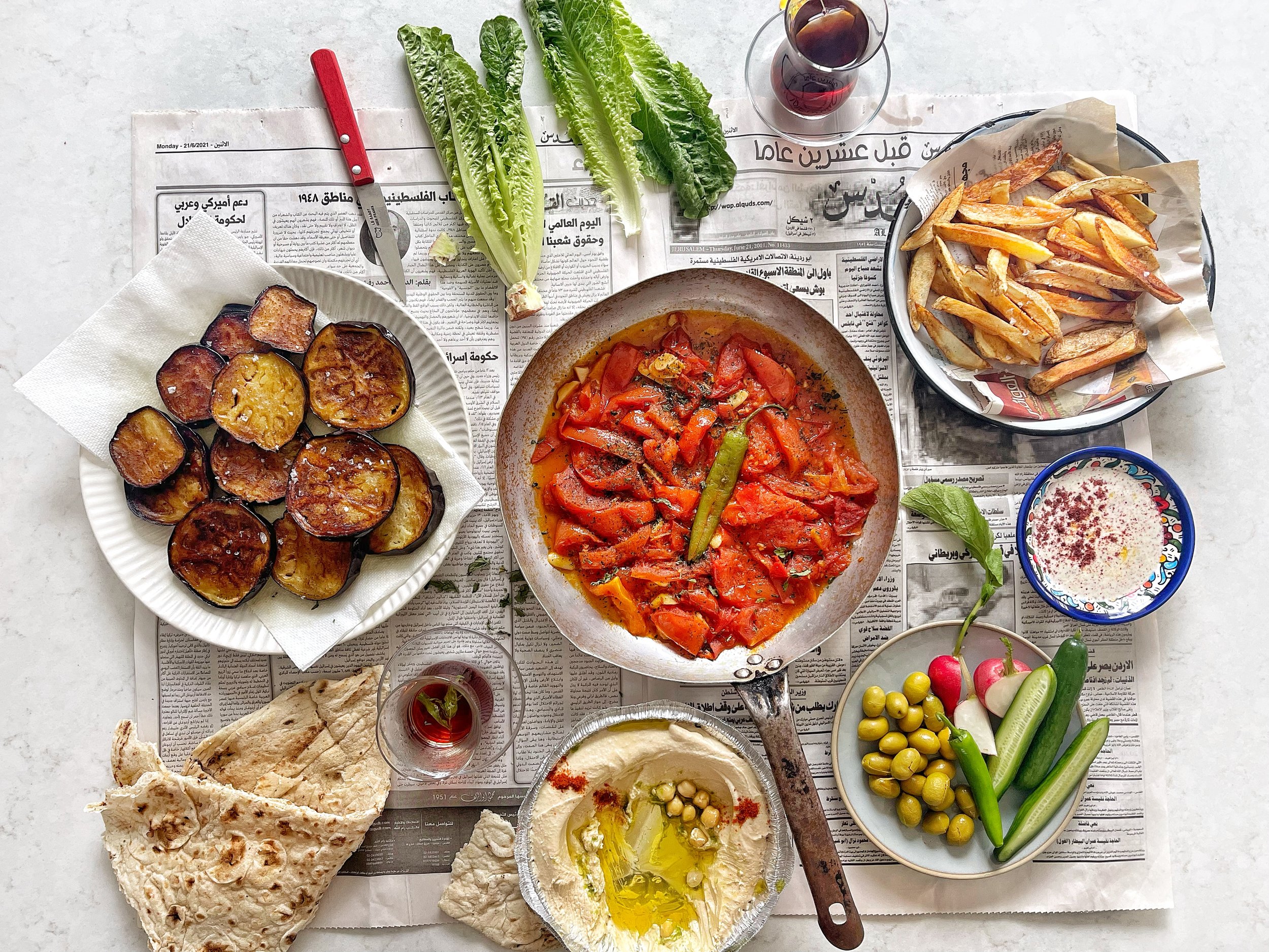 Meals are made in abundance—not just to feed a family, but to welcome whoever might stop by. Cooking in large quantities is a tradition rooted in hospitality and generosity. Main dishes are served family-style, with large platters placed at the center of the table, inviting everyone to gather, share, and partake. This way of eating is not only practical but deeply cultural—a reflection of the Palestinian value of karam, or boundless hospitality. Every dish is a story—of soil and sea, of heritage and resilience. To eat from a Palestinian table is to taste a connection to the past and to celebrate the community and care that go into every bite.