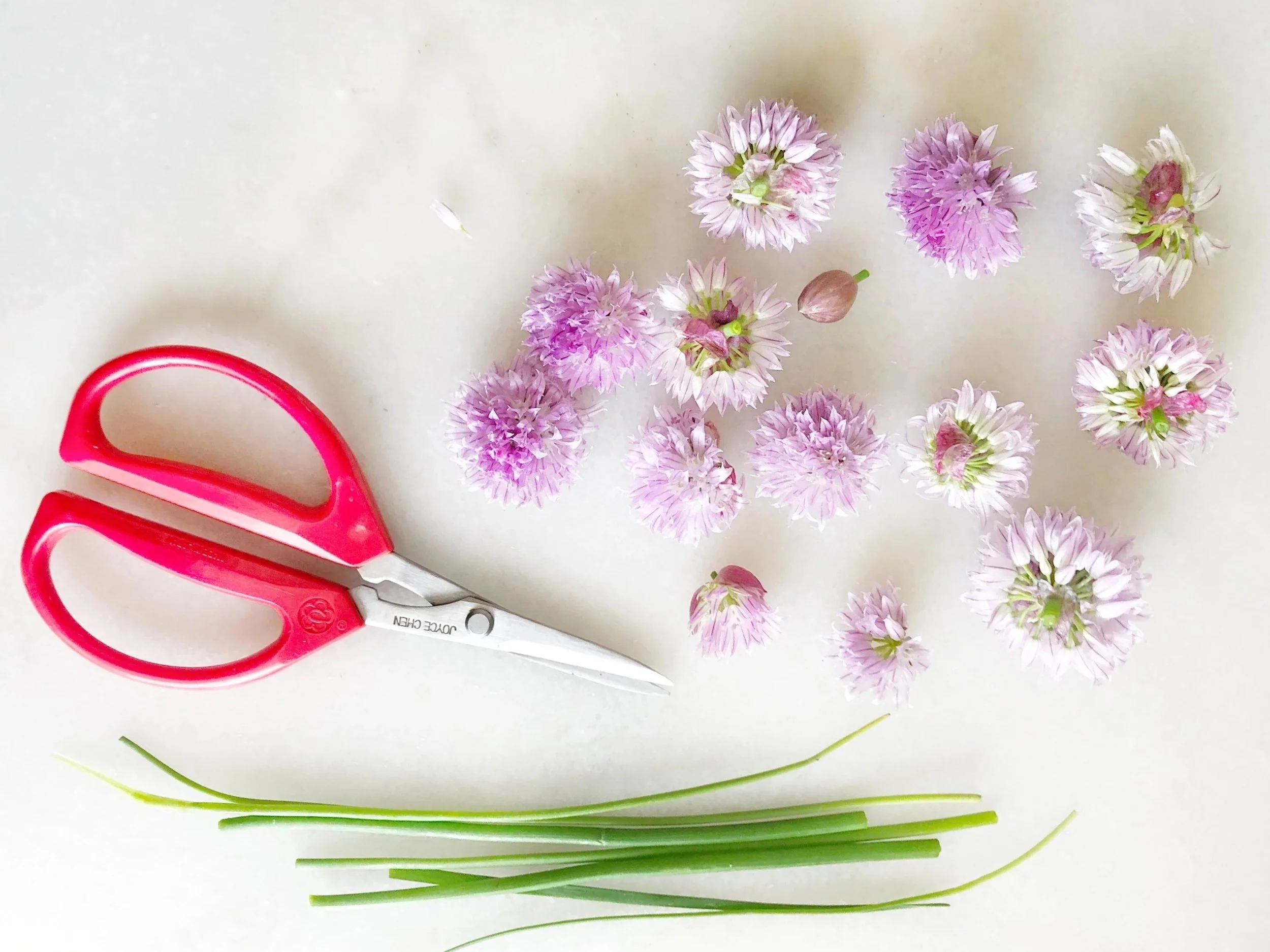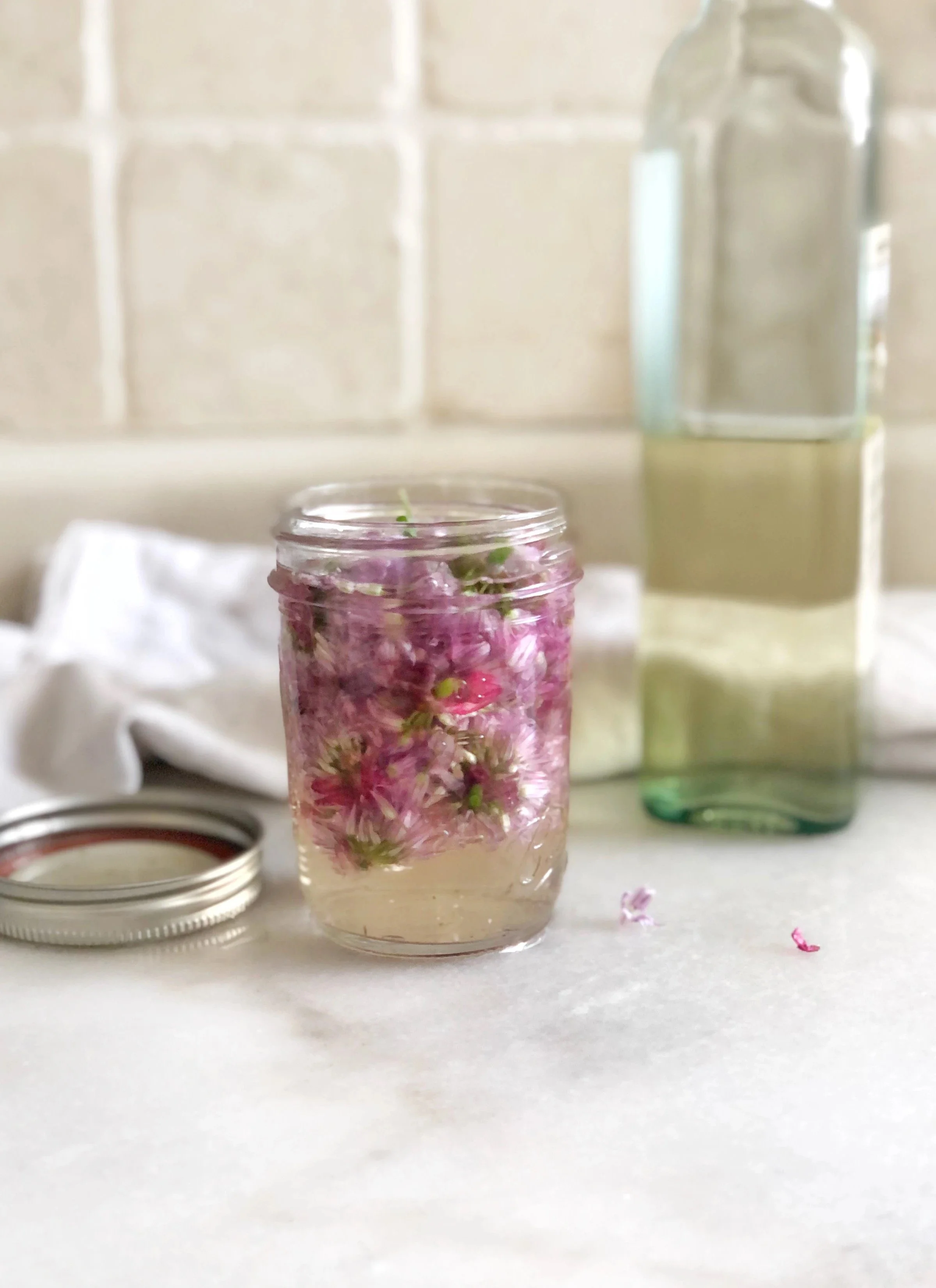1 cup fresh chive blossoms (pick the bright purple ones, not the old ones as they are dry)