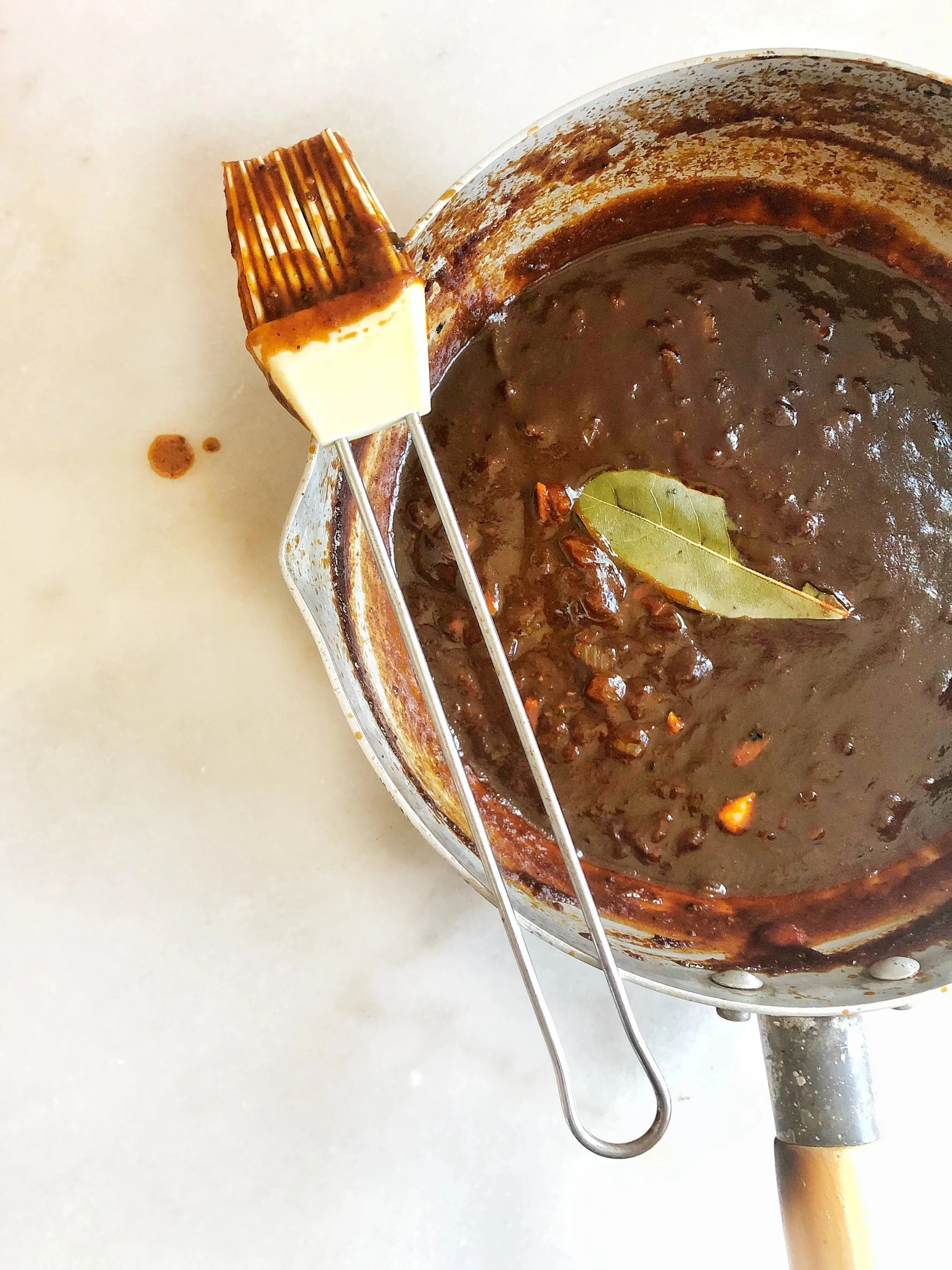 Add the water to thin out. Then reduce the heat to low and let simmer for another 15 minutes, until thickened and syrupy. If sauce is too thick dilute with water adding 1 tbls at a time.