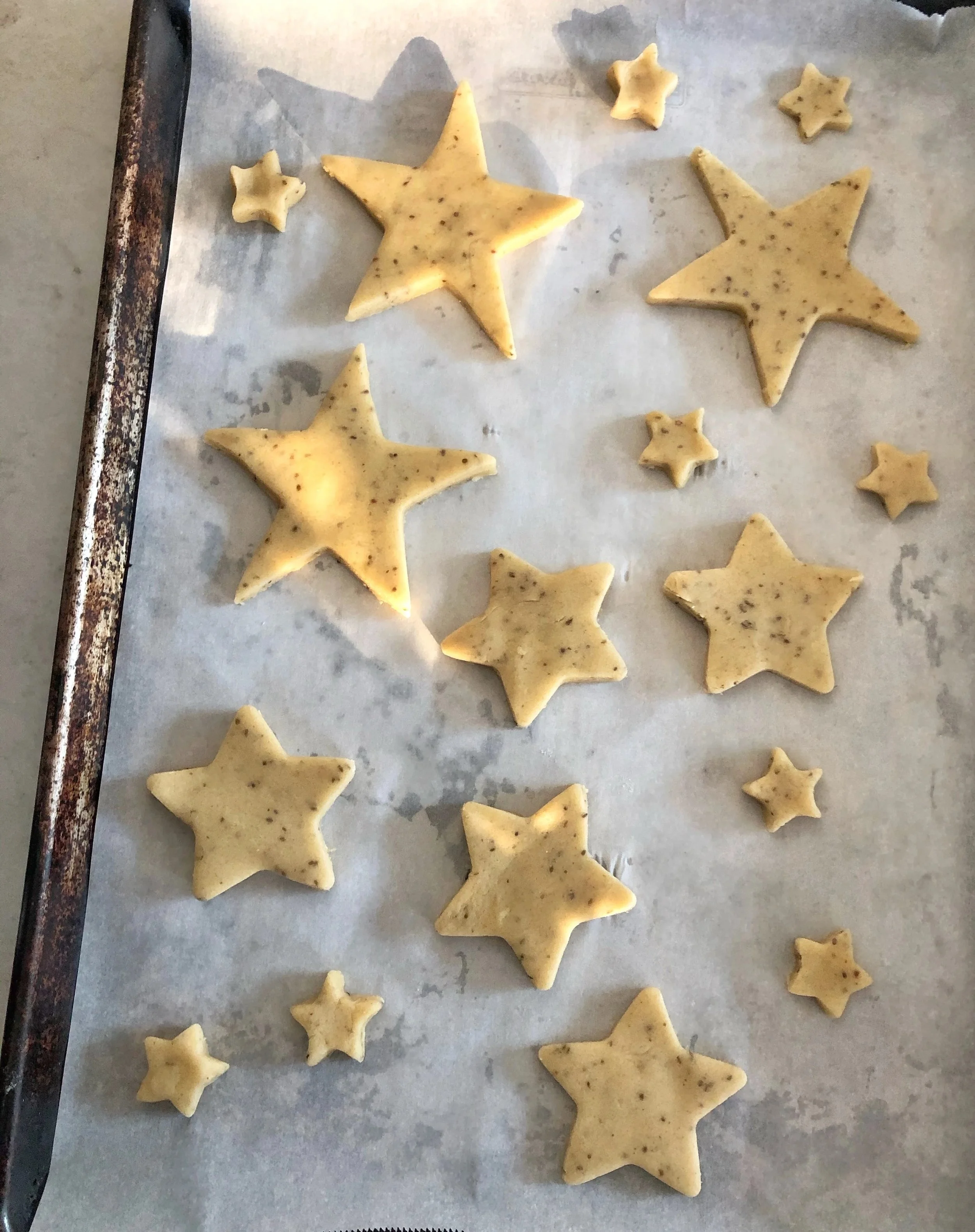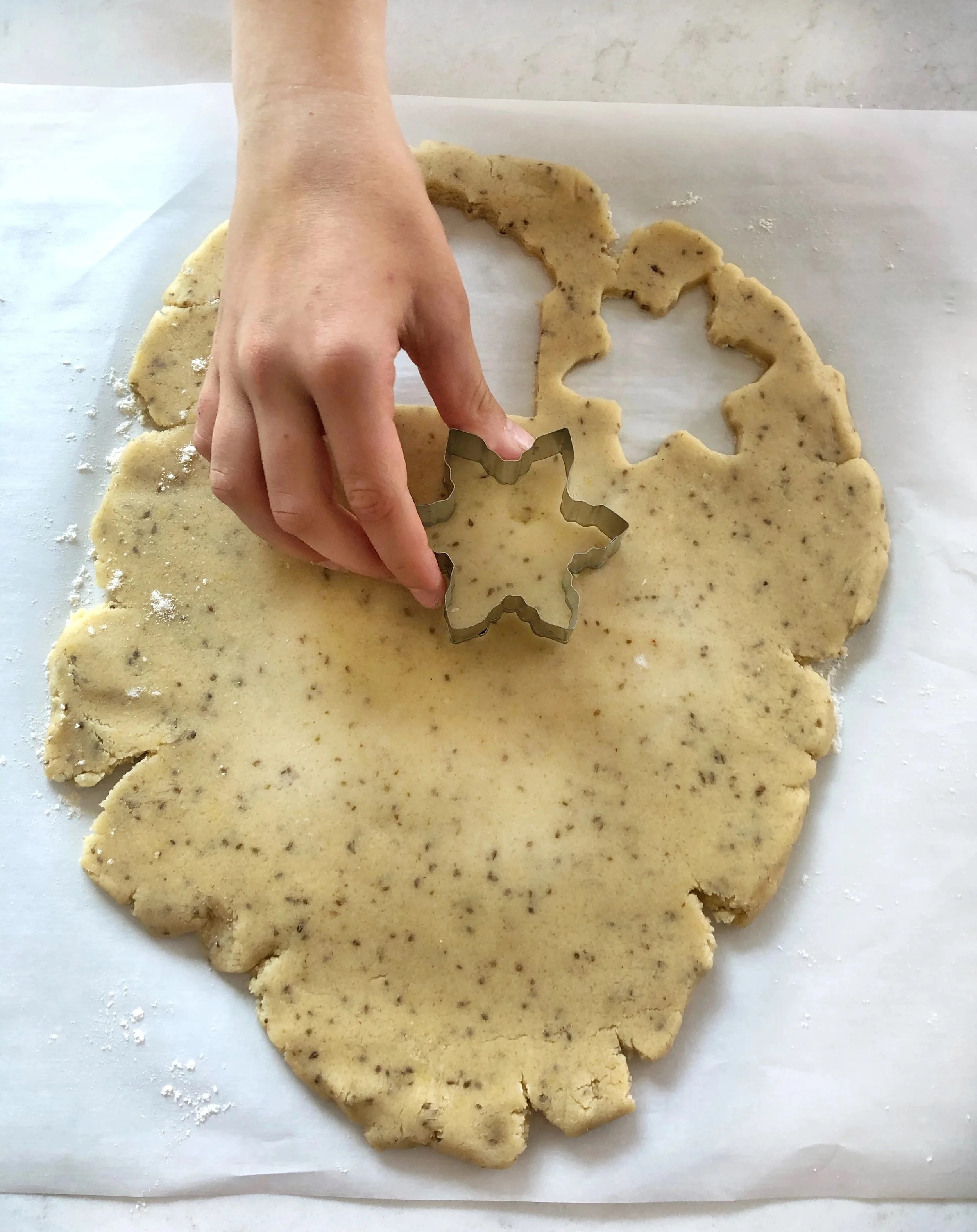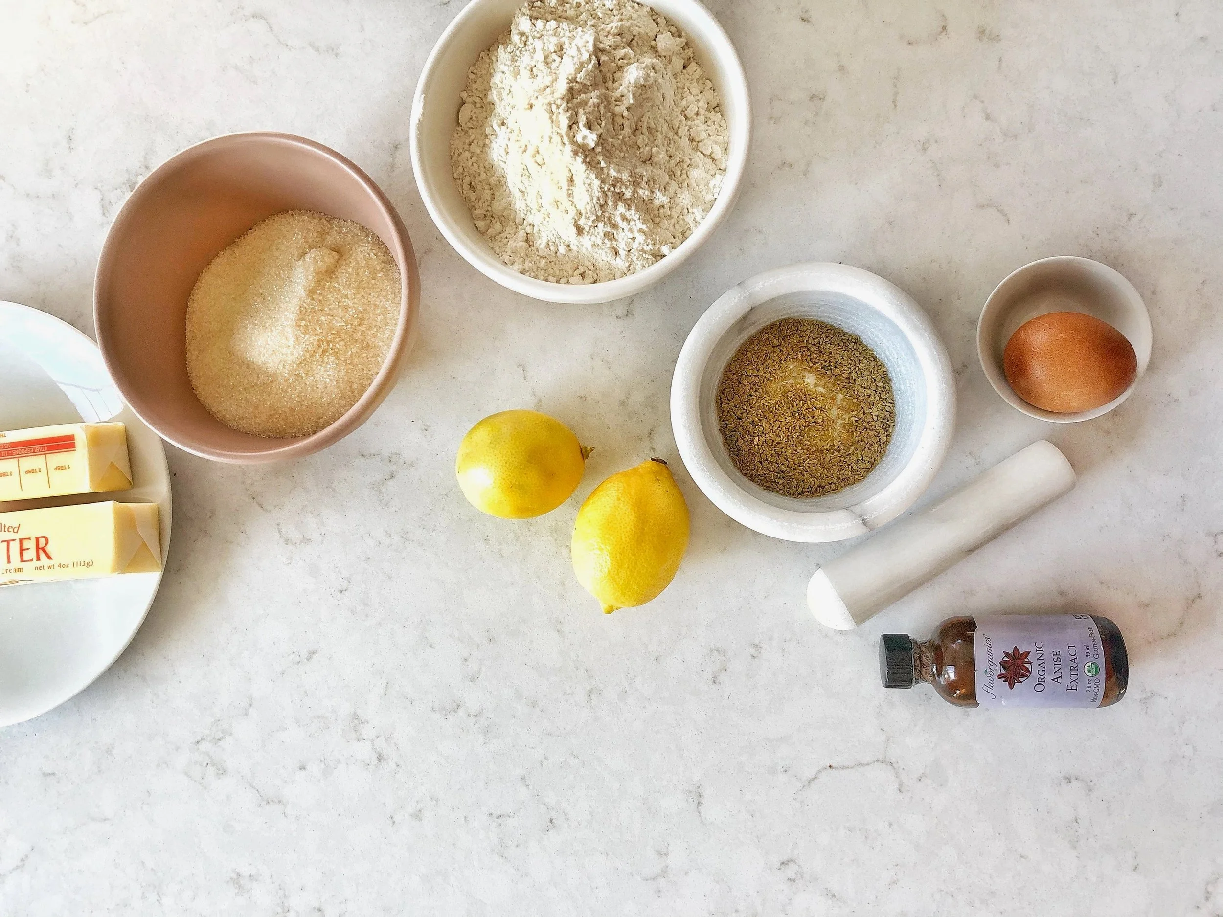 A sugar cookie is such a simple pleasure. They’re so buttery, sweet and melt in your mouth. The same reasons my kids say i ruined this sugar cookie recipe. Don't listen to them i have been adding anise to these cookies since they were old enough to decorate them and every year i hear the same story "mom, here comes the aneeeeese cookies again, why aneeeesssseee!!!. Why, because flavors of anise and citrus are very common in Arab baked goods and treats. Anise seeds are in fact steeped to make a warm cozy tea that's often served in the winter months. That cozy aroma always reminds me of my teta's house in the winter and the image of teta sitting by the stand alone heater with her white shawl over her shoulders and thick socks and slippers. Its my way of incorporating the flavors that are familiar to me growing up to new traditions and ideas. I never grew up with cut out cookies when i was little in Palestine, but we always had an anise or yansoon flavored cookie of sort for the holidays.